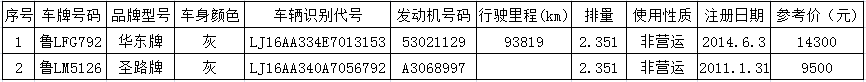 5月28日日照東港農商行華東牌、圣路牌兩輛汽車拍賣公告