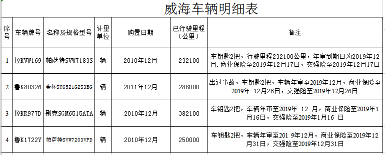 7月17日 威海地區(qū)機動車四輛整體拍賣公告