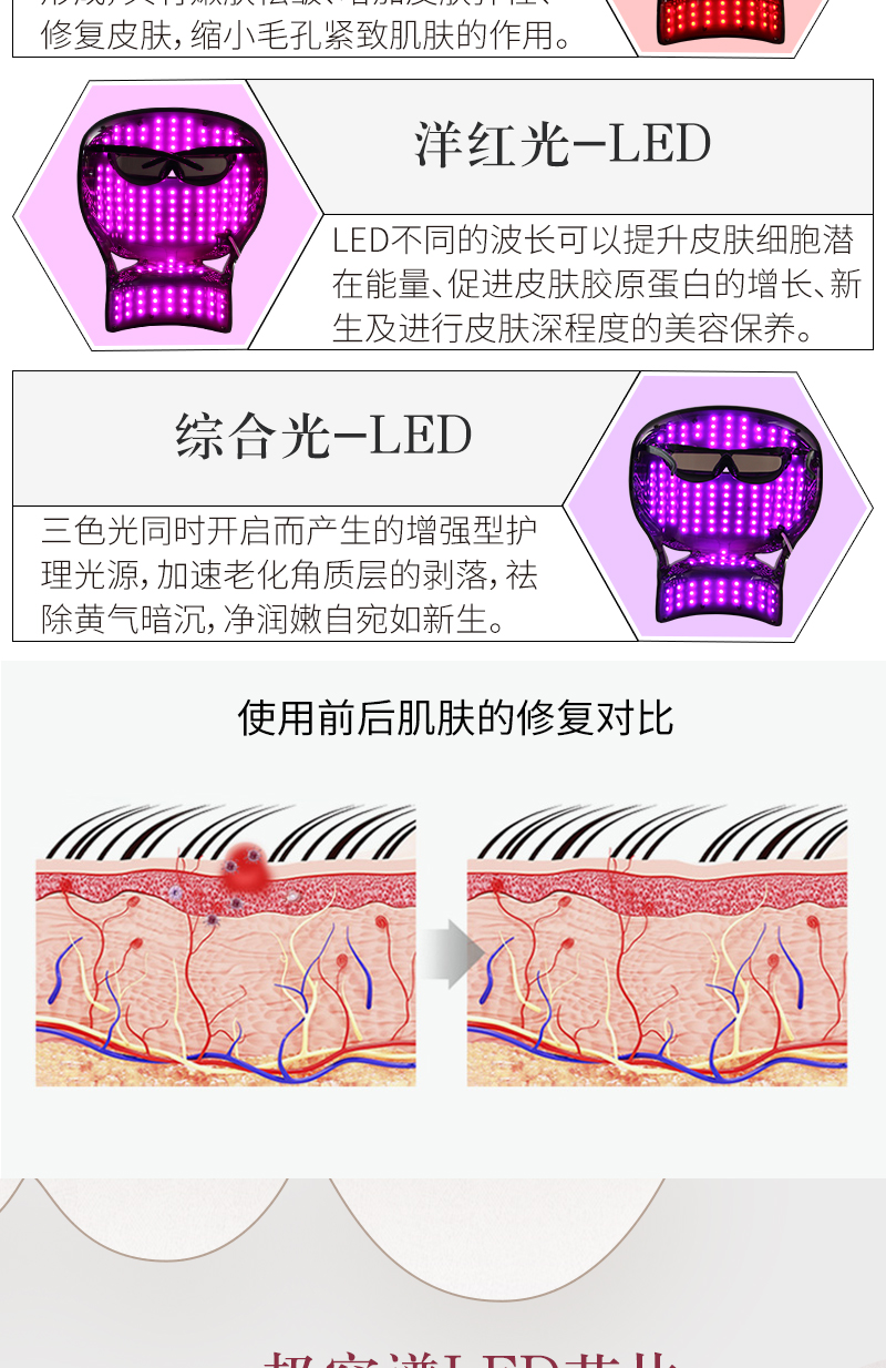 LED美容光促進(jìn)肌底微循環(huán),提亮膚色