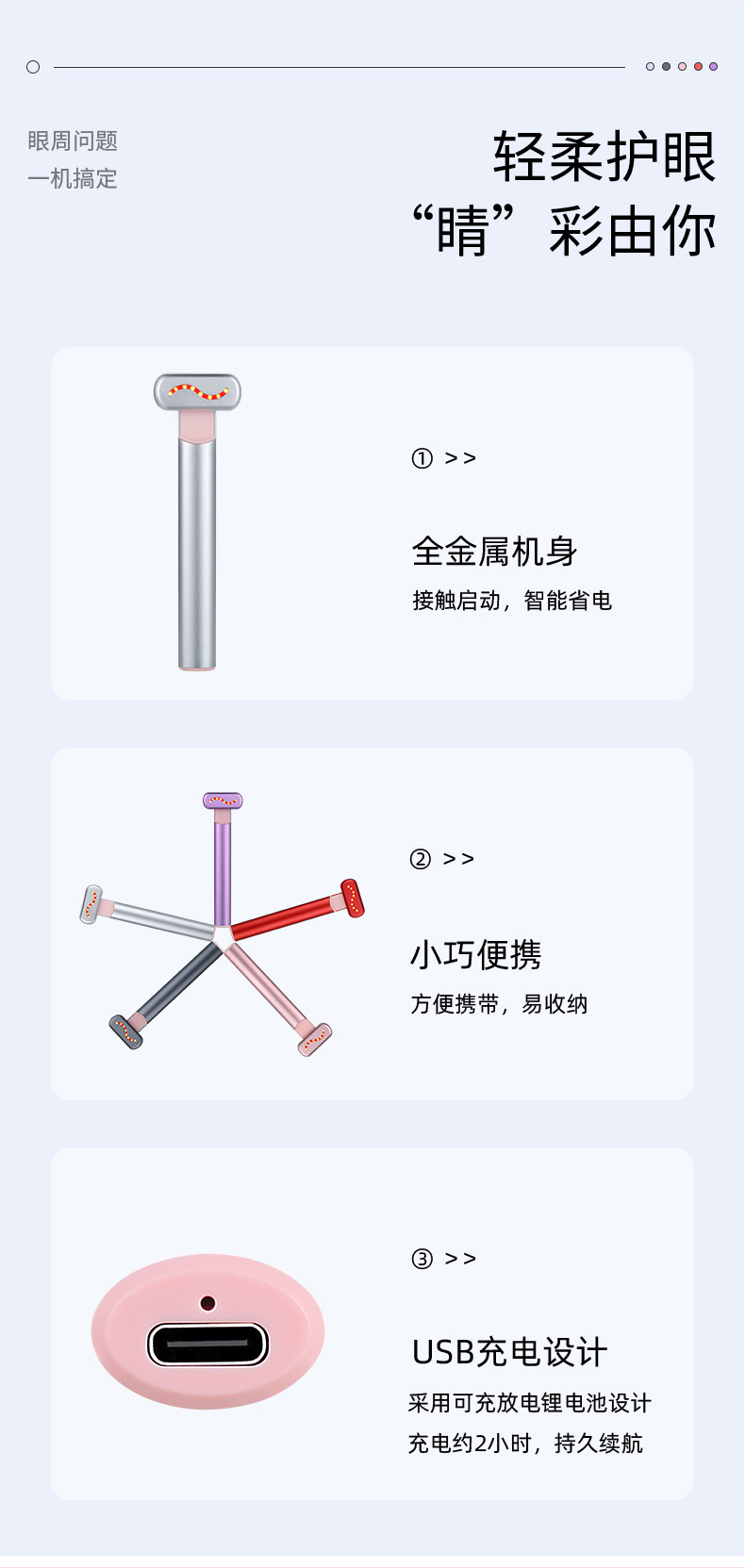 促進(jìn)眼底微循環(huán),提亮膚色 日護(hù)理增加眼部彈性,改善暗黃,淡化色斑 溫?zé)峥梢跃A導(dǎo)入 讓肌膚更加滋潤亮麗 配合化裝品使用補充肌膚水分使之更光滑、柔嫩 美容紅光深層滲透,肌膚自然修復(fù) 每天十分鐘,讓肌膚重綻光芒 ,EMS眼部按摩棒EMS眼部按摩棒," />